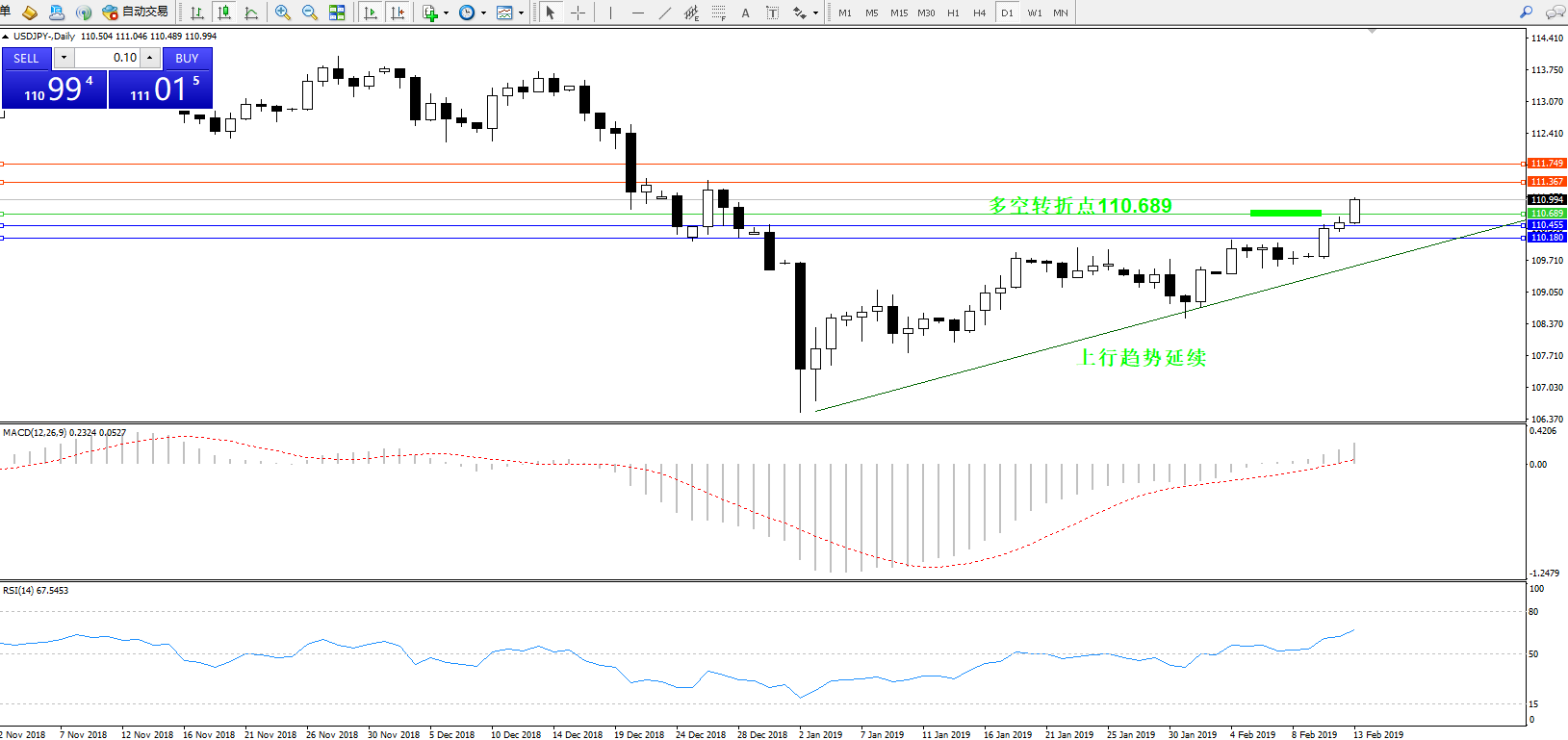 交易策略:110.689上方看涨,目标111.367111.749