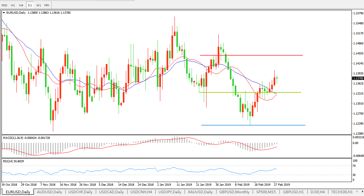 交易策略:在1.1333之上,看涨,目标价位为 1.1405 ,然后为1 .1450。