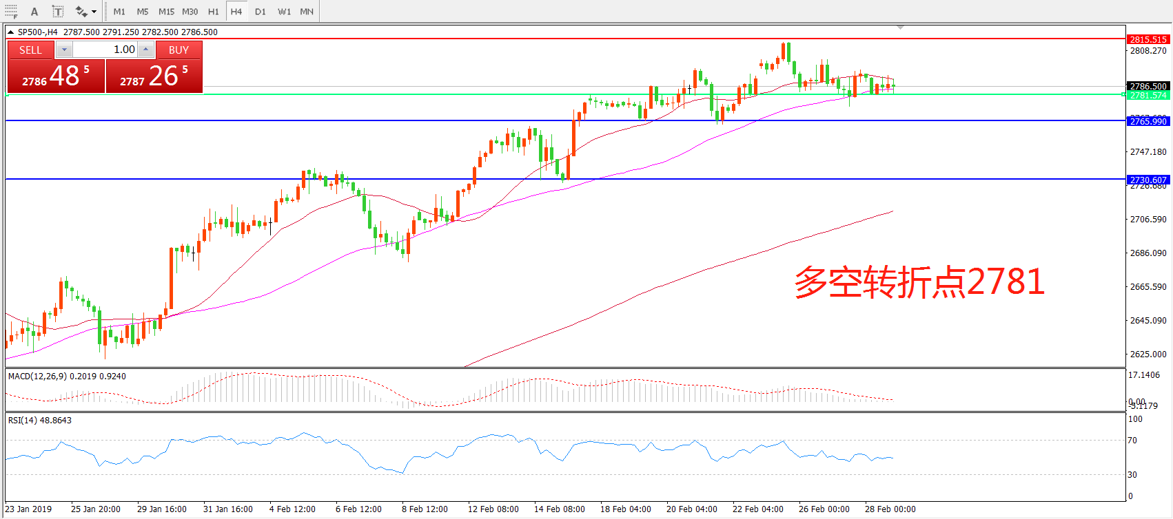 周四(2月28日),美国GDP年化季环比初值为2.6%,虽低于前值3.4%,但高于市场预期的2.2%,显示经济正在放缓,但还不足以使投资者更加焦虑。但美朝峰突然无果而终,影响了美股的整体表现。标普500指数收跌7.89点,,报2784.49点,2月份累涨逾2.97%。