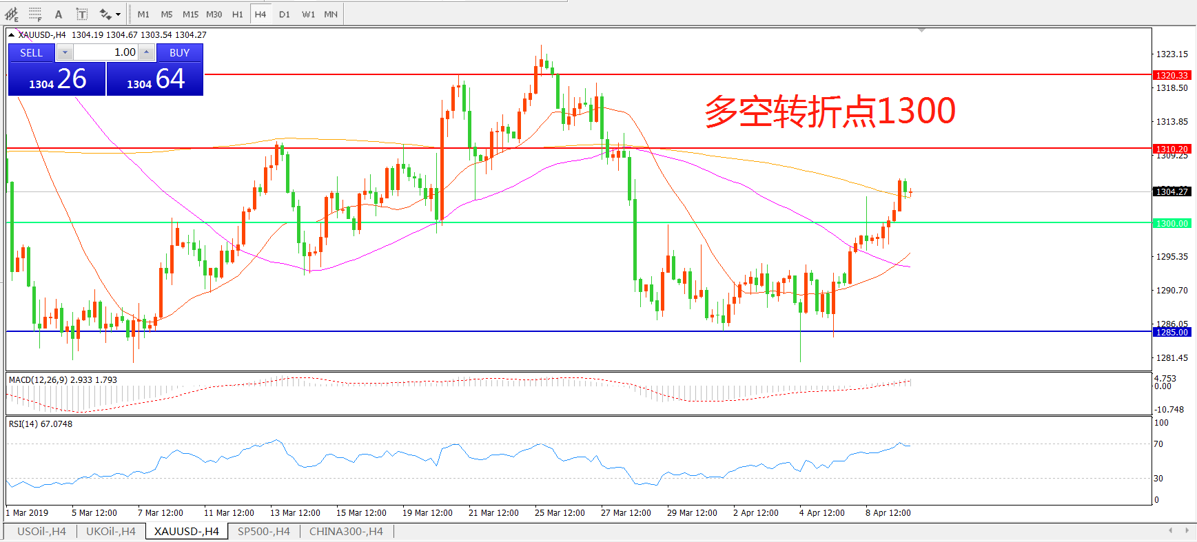 交易策略:在1300.00之上看涨,目标1310.00   1320.00