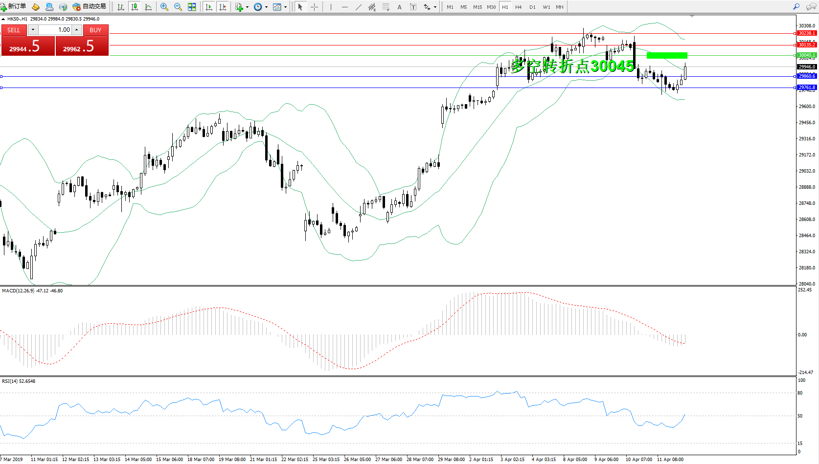 恒指HK50 ——1小时K线图显示: