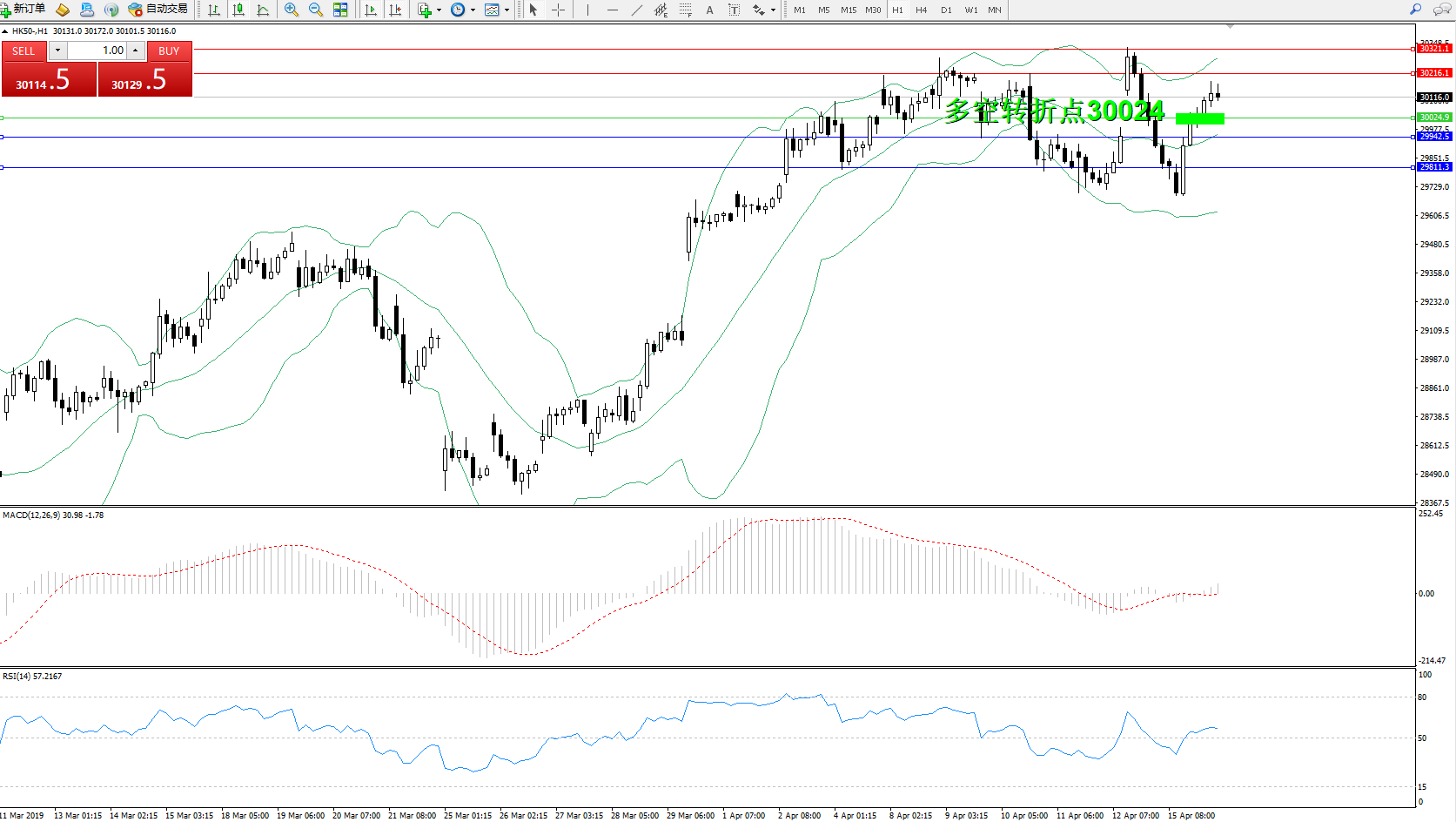恒指HK50 ——1小时K线图显示: