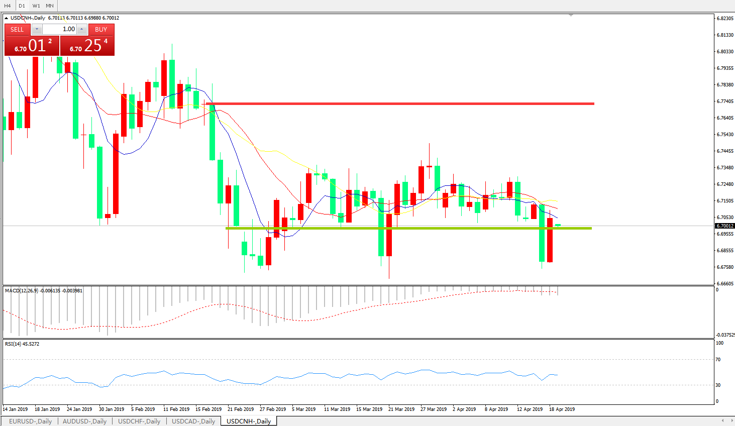 备选策略: 在6.6990之下,看跌,目标价位为6.6730,然后为6.6325 。