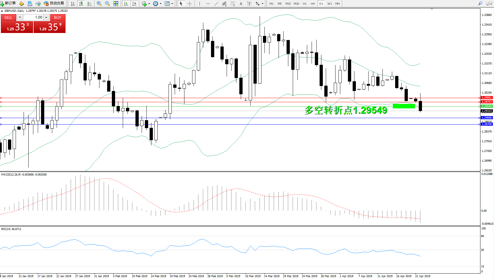 交易策略:1.29549下方看跌,目标1.29008、1.28700