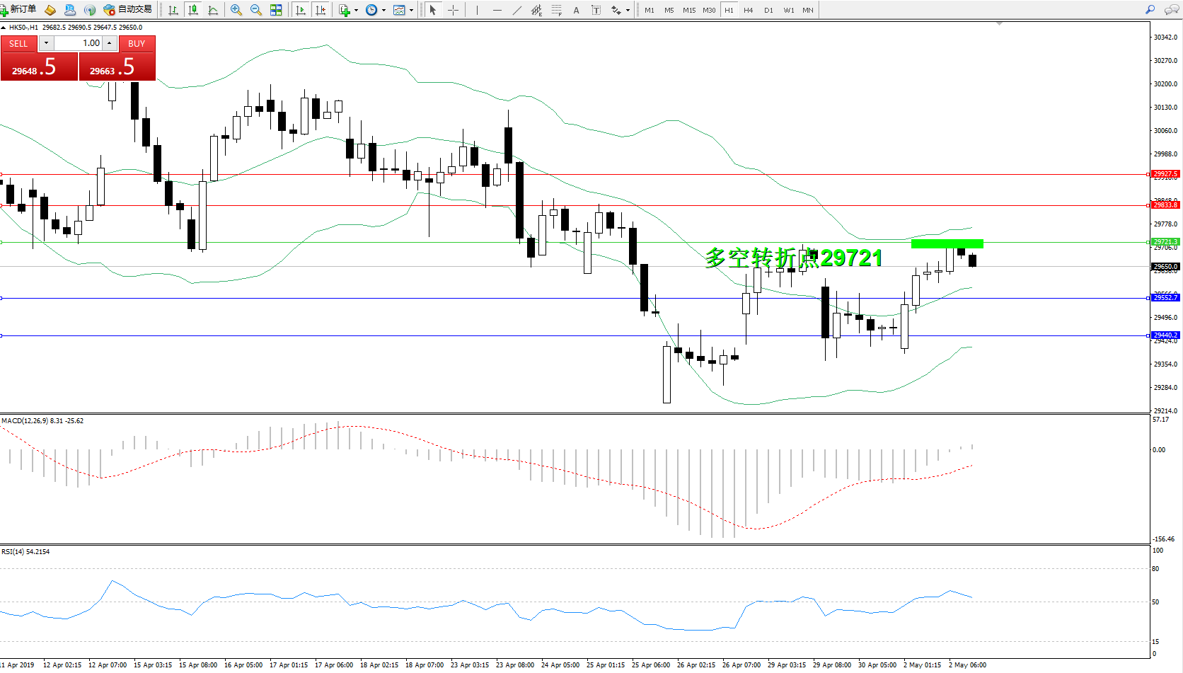 恒指HK50 ——1小时K线图显示: