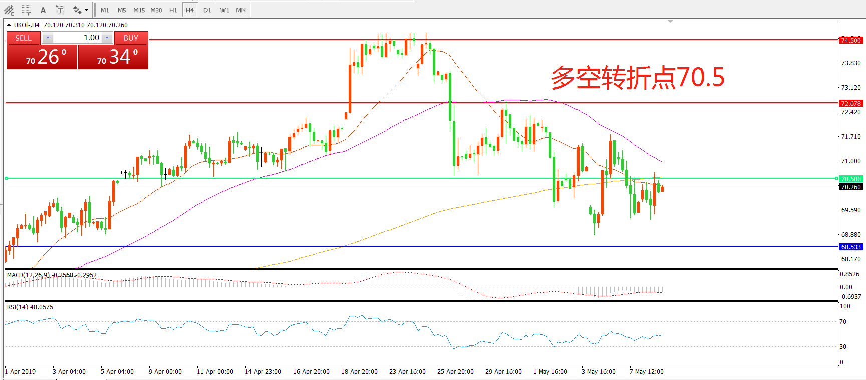 交易策略:在70.50之下看跌,目标68.50 66.00