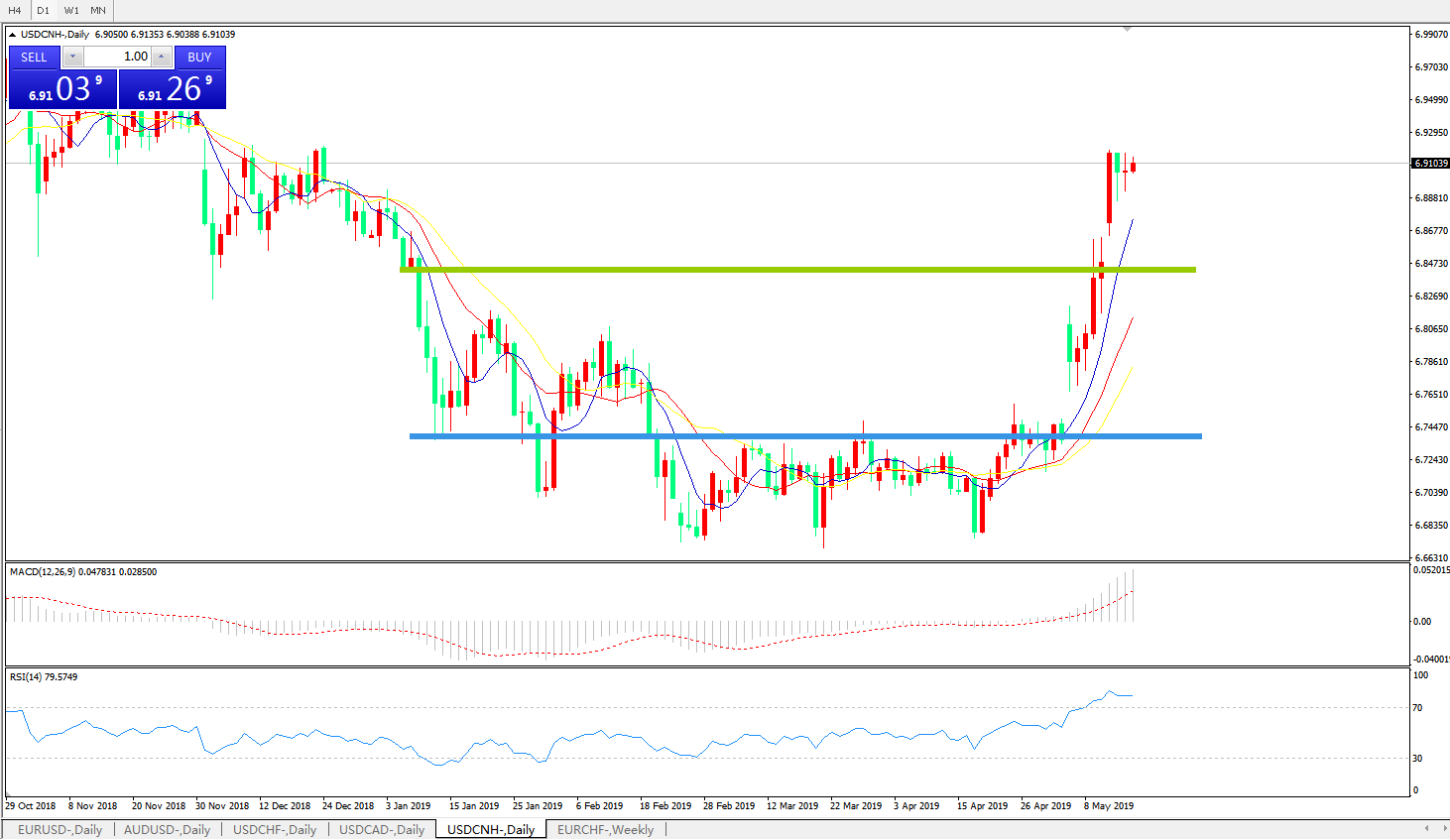 国际贸易局势有所升温,令市场避险情绪加剧,人民币面临下行风险,美元兑人民币直逼6.91关口,逾4个月高位,汇率的波动反映了市场在不确定性增加后的反应,但在机制上将利好人民币汇率的稳定。即使短期内人民币会承压,但美元兑人民币汇率破7的概率依然很低。