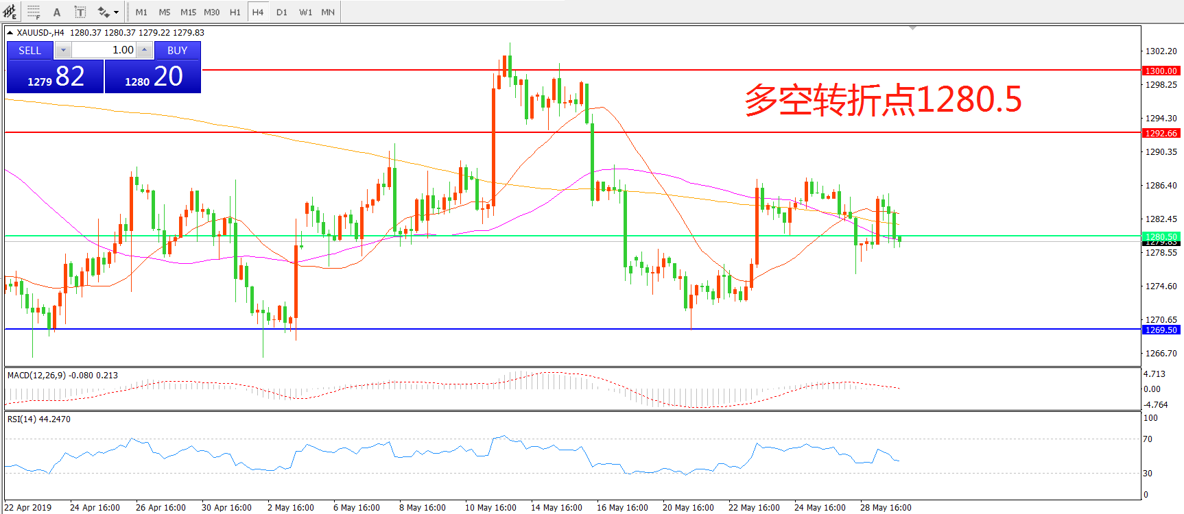 多空转折点:1280.50