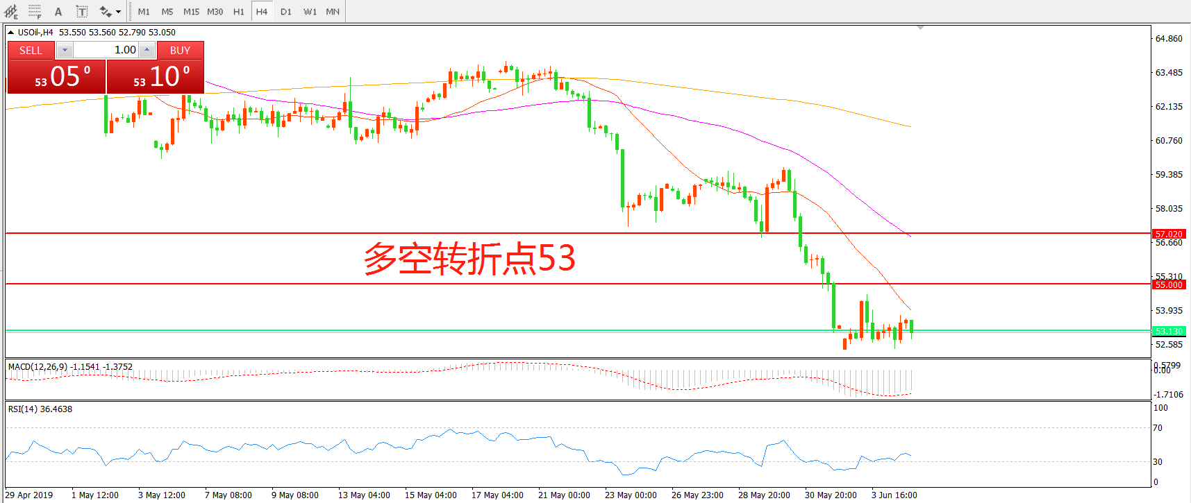 交易策略:在53.00之下看跌,目标50.00    46.00