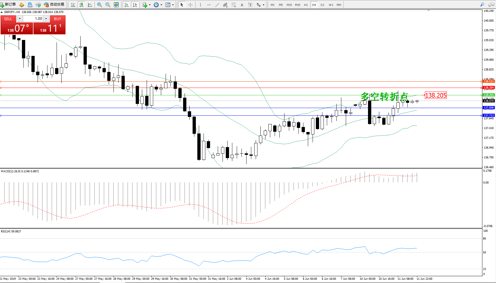 交易策略:138.205下方看跌,目标137.898137.713