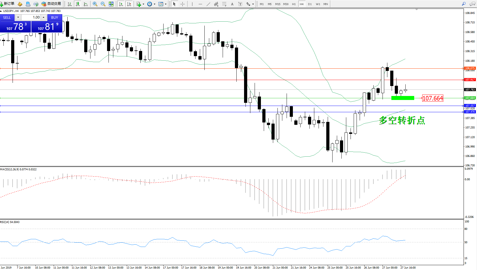 备选策略:107.664下方看跌,目标 107.557、107.470