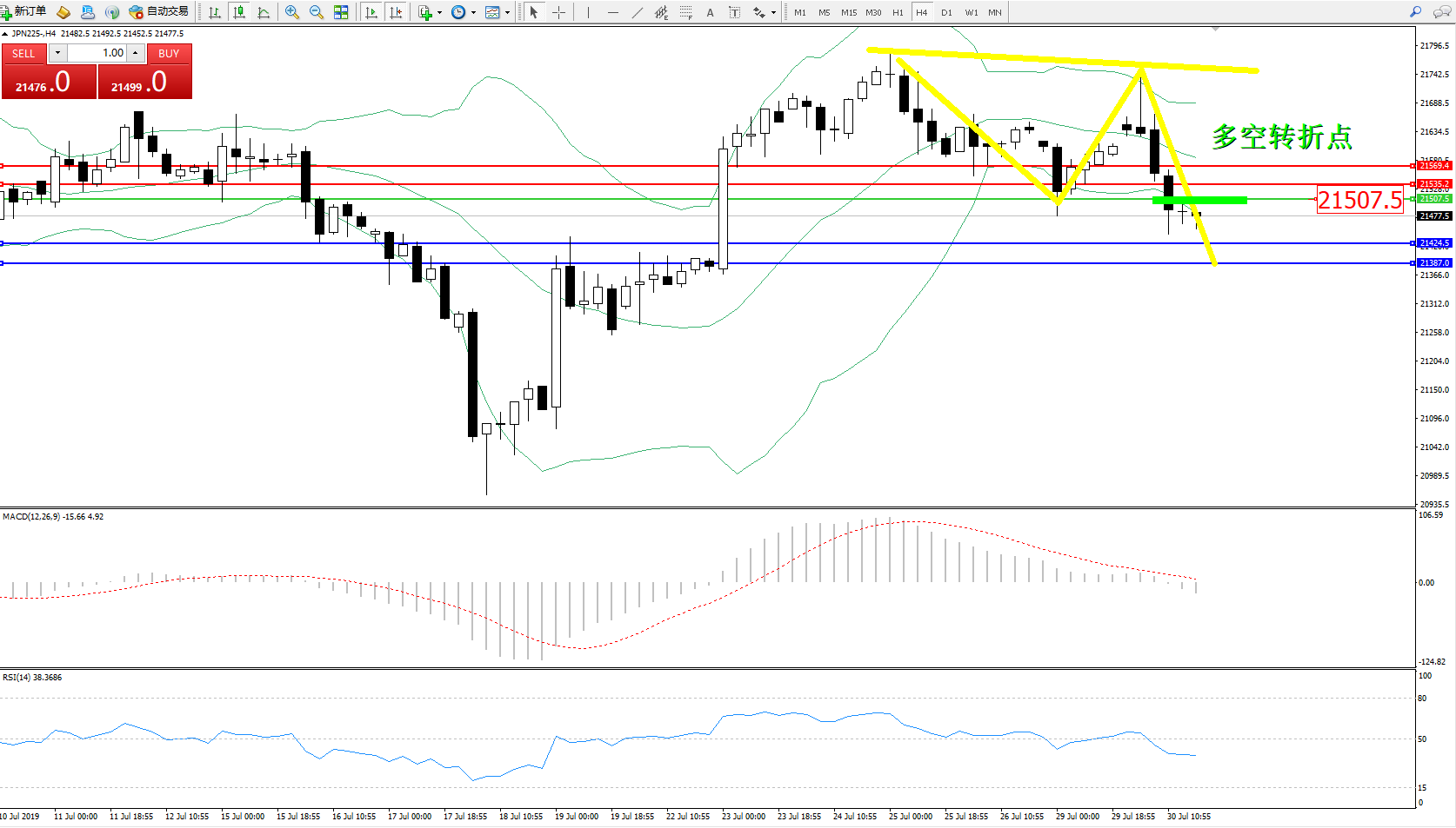 交易策略:21507下方看跌,目标21424、21387