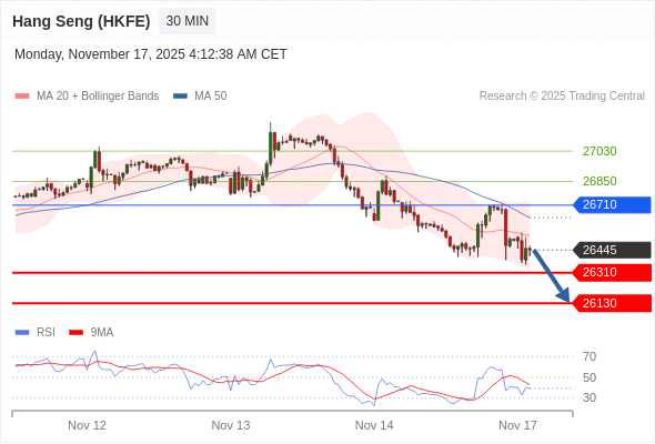 交易策略: 在 26710 之下,看跌,目标价位为 26310 ,然后为 26130 。