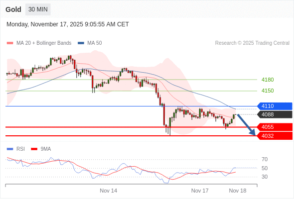 在 4110 之下,看跌,目标价位为 4055 ,然后为 4032 。