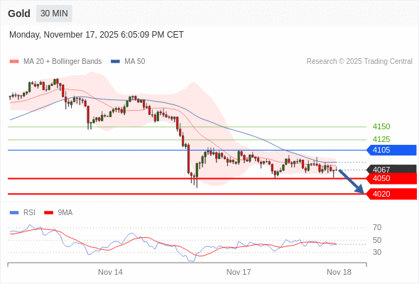 在 4105 之下,看跌,目标价位为 4050 ,然后为 4020 。