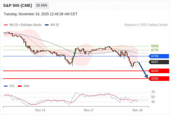 在 6735 之下,看跌,目标价位为 6640 ,然后为 6590 。