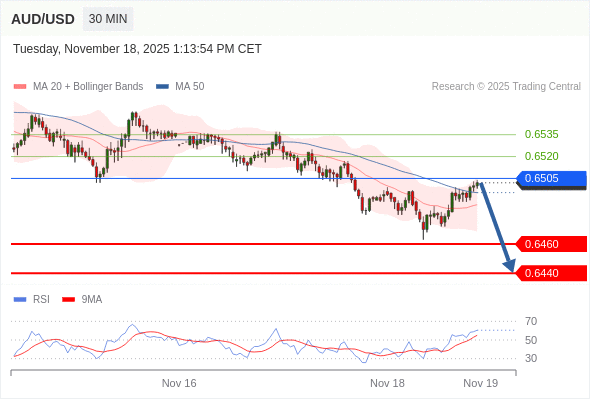 在 0.6505 之下,看跌,目标价位为 0.6460 ,然后为 0.6440 。