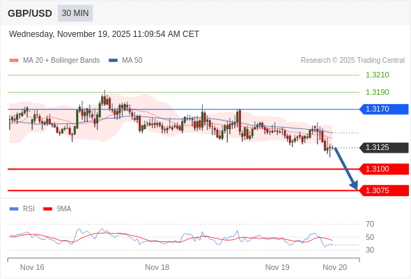在 1.3170 之下,看跌,目标价位为 1.3100 ,然后为 1.3075 。