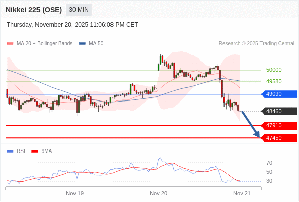 交易策略: 在 49090 之下,看跌,目标价位为 47910 ,然后为 47450 。