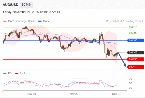 在 0.6480 之下,看跌,目标价位为 0.6430 ,然后为 0.6410 。