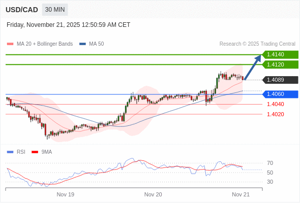 在 1.4060 之上,看涨,目标价位为 1.4120 ,然后为 1.4140 。