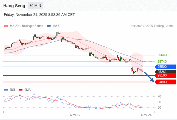 在 25500 之下,看跌,目标价位为 25100 ,然后为 24800 。