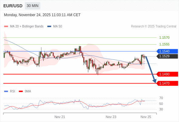 在 1.1540 之下,看跌,目标价位为 1.1490 ,然后为 1.1470 。