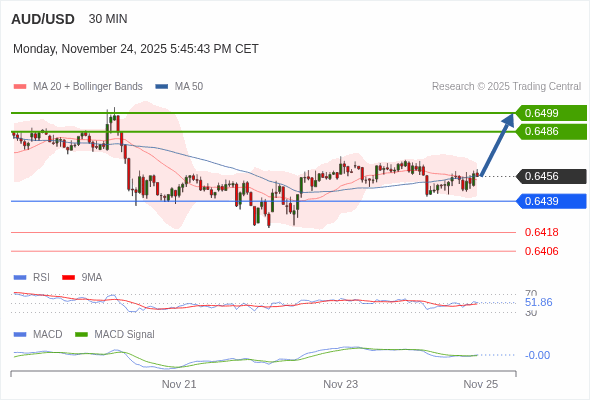 澳元/美元 当日内 : 看涨。