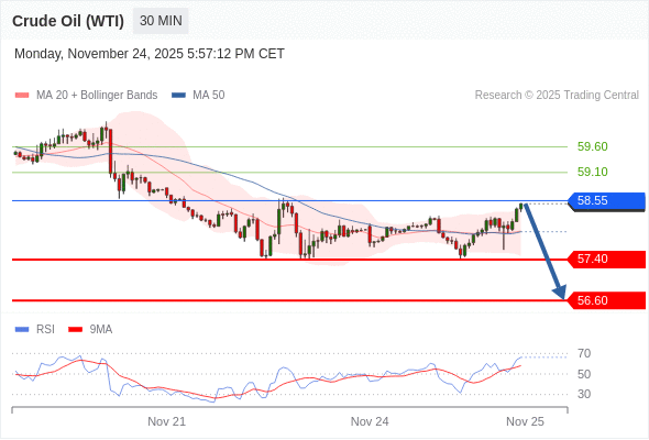 在 58.55 之下,看跌,目标价位为 57.35 ,然后为 56.60 。