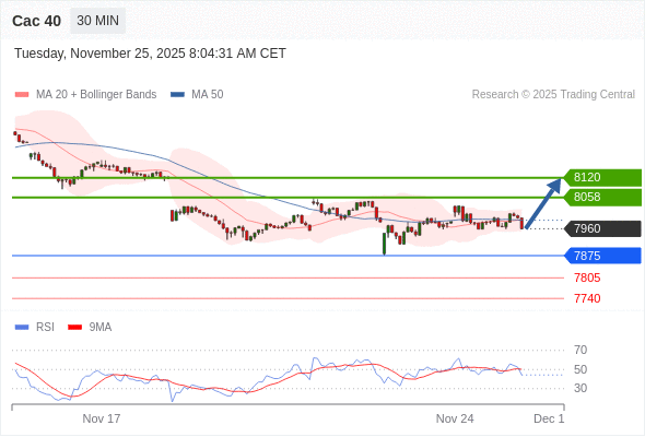 Cac 40 当日内: 超短线(当日内)支撑位在7875附近。