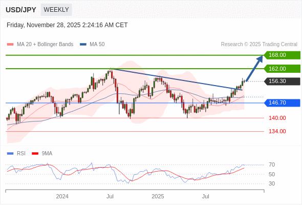 在 146.70 之上,看涨,目标价位为 162.00 ,然后为 168.00 。