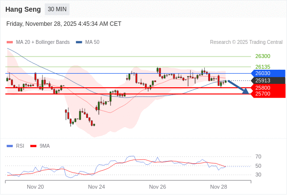 在 26030 之下,看跌,目标价位为 25800 ,然后为 25700 。
