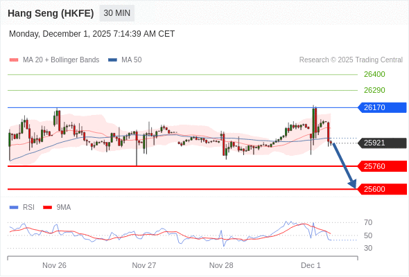 在 26170 之下,看跌,目标价位为 25760 ,然后为 25600 。