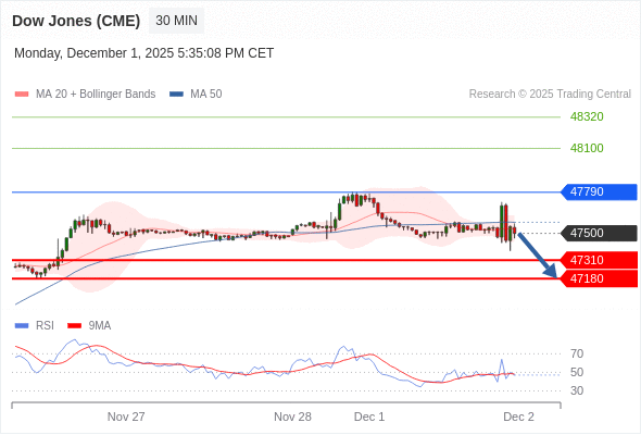 在 47790 之下,看跌,目标价位为 47310 ,然后为 47180 。