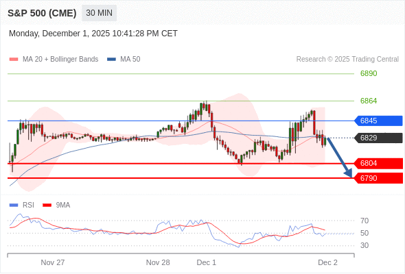 在 6845 之下,看跌,目标价位为 6804 ,然后为 6790 。