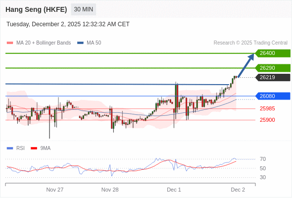在 26080 之上,看涨,目标价位为 26290 ,然后为 26400 。