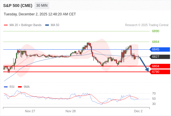 在 6845 之下,看跌,目标价位为 6804 ,然后为 6790 。