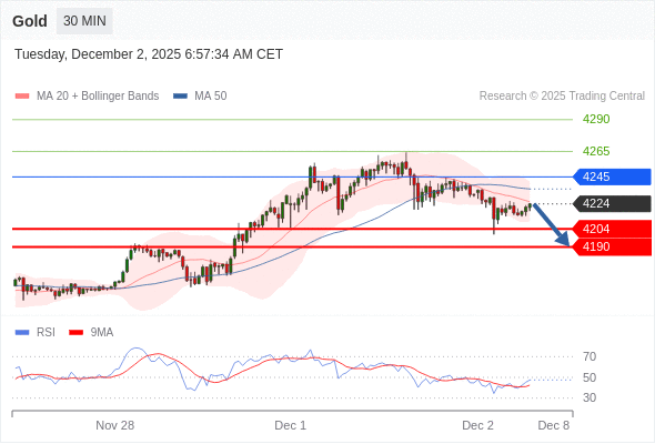 在 4245 之下,看跌,目标价位为 4204 ,然后为 4190 。