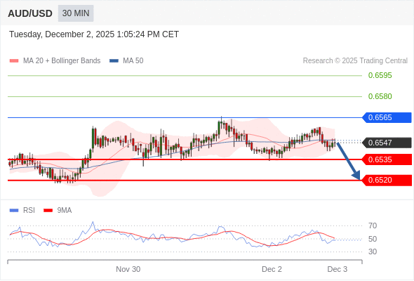 在 0.6565 之下,看跌,目标价位为 0.6535 ,然后为 0.6520 。