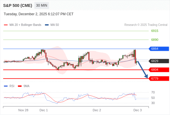 在 6864 之下,看跌,目标价位为 6804 ,然后为 6779 。