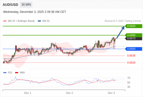 在 0.6550 之上,看涨,目标价位为 0.6580 ,然后为 0.6600 。