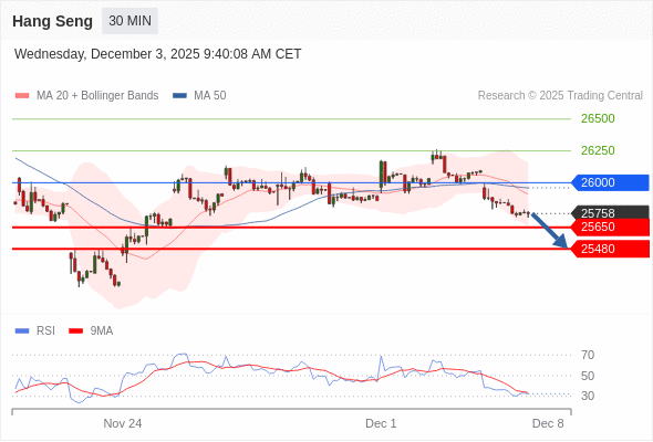 在 26000 之下,看跌,目标价位为 25650 ,然后为 25480 。