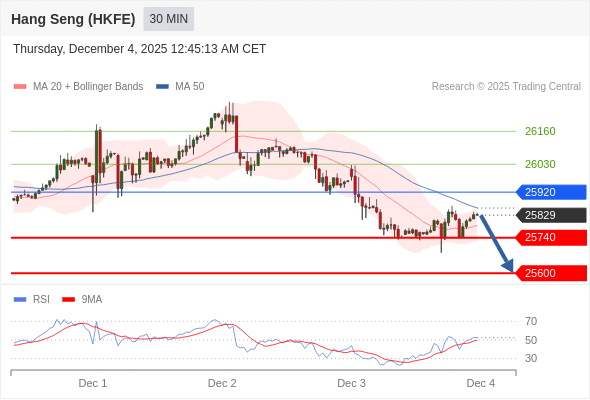 香港恒生指数期货 当日内: 短期关键阻力位在25920。