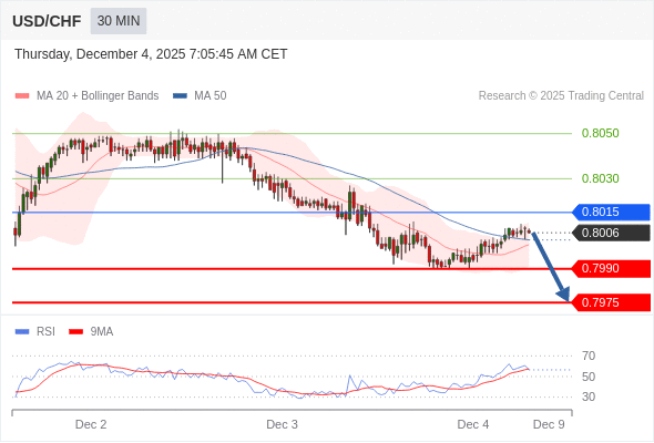 在 0.8015 之下,看跌,目标价位为 0.7990 ,然后为 0.7975 。