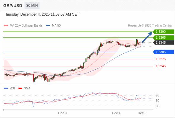 在 1.3305 之上,看涨,目标价位为 1.3365 ,然后为 1.3390 。