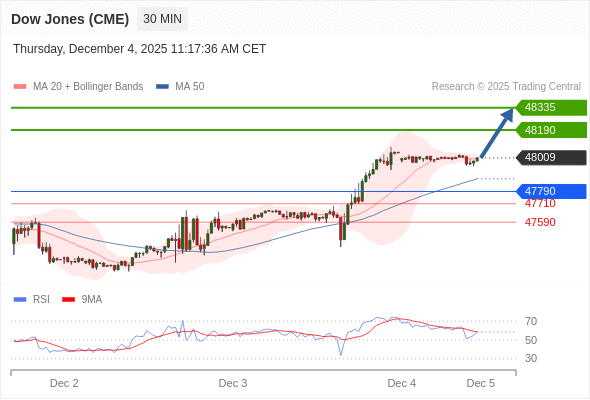 在 47790 之上,看涨,目标价位为 48190 ,然后为 48335 。