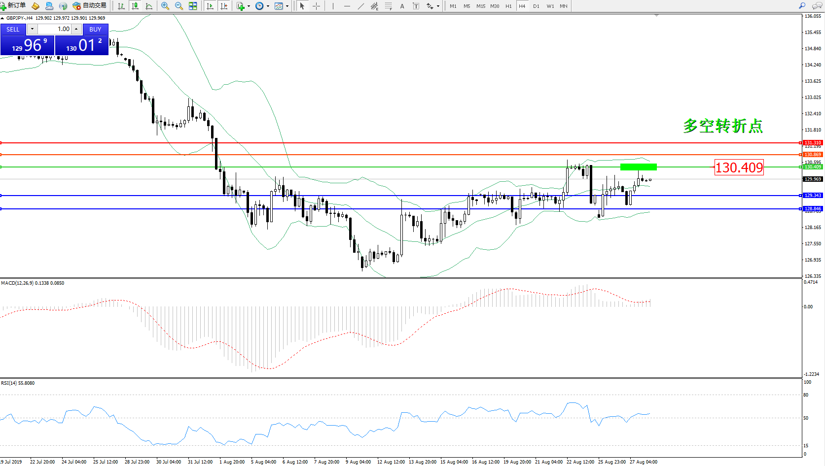 交易策略:130.409下方看跌,目标129.343、128.846