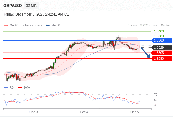 交易策略: 在 1.3360 之下,看跌,目标价位为 1.3305 ,然后为 1.3280 。