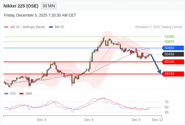 在 50650 之下,看跌,目标价位为 50160 ,然后为 49730 。