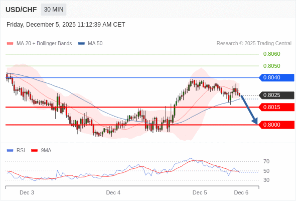 在 0.8010 之上,看涨,目标价位为 0.8050 ,然后为 0.8070 。
